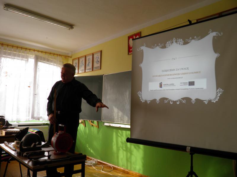 W gościnnych murach Szkoły Podstawowej w Świerczynkach rozpoczął się cykl lekcji historycznych w ramach projektu Unii Europejskiej realizowanym przez Stowarzyszenie Rozwoju Gminy Łysomice. Blisko 50-ciu uczniów miało możliwośc uczestniczyć w "żywej historii", którą przedstawił regionalista-pasjonat Adam Kozłowski. Każde zajęcia kończyły się testem, a na pamiątkę uczestnicy otrzymywali teczki z wyposażeniem oraz zaproszeniem na stronę internetową www.wystawalysomice.pl