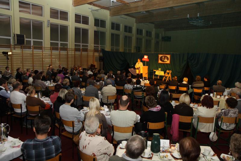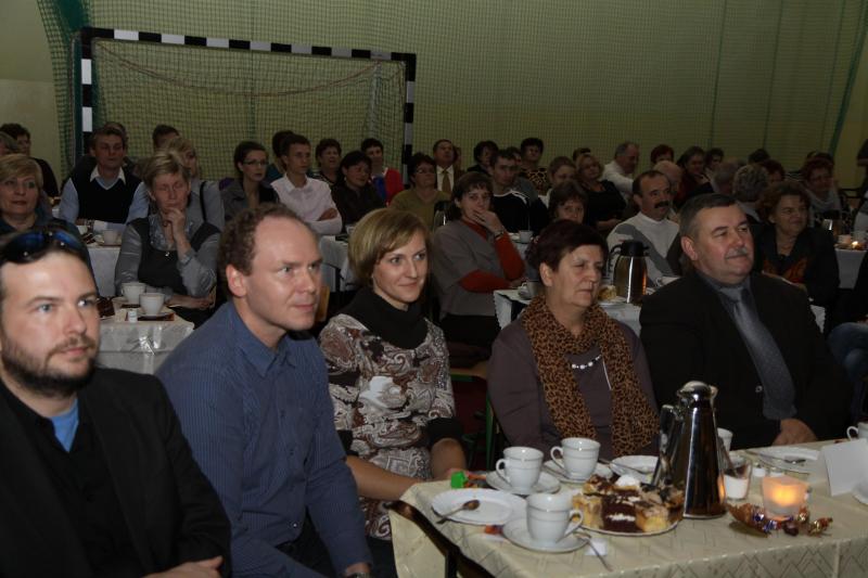 W ostatnią niedzielę listopada sala gimnastyczna w Łysomicach zmieniła się w salę teatralną. Po raz drugi dzięki zaangażowaniu Rady Sołeckiej, radnych Łysomic i pracowników szkoły mieszkańcy mieli możliwość przy filiżance kawy i smacznym cieście upieczonym przez panie z Koła Kobiet Aktywnych obejrzeć przedstawienie teatralne. Ponad 200 osób obejrzało spektakl „Zagryziakowie” Teatru Impresaryjnego Afisz. W spotkaniu uczestniczyli również Wójt Gminy Piotr Kowal i Przewodniczący Rady Gminy Roman Wojda.