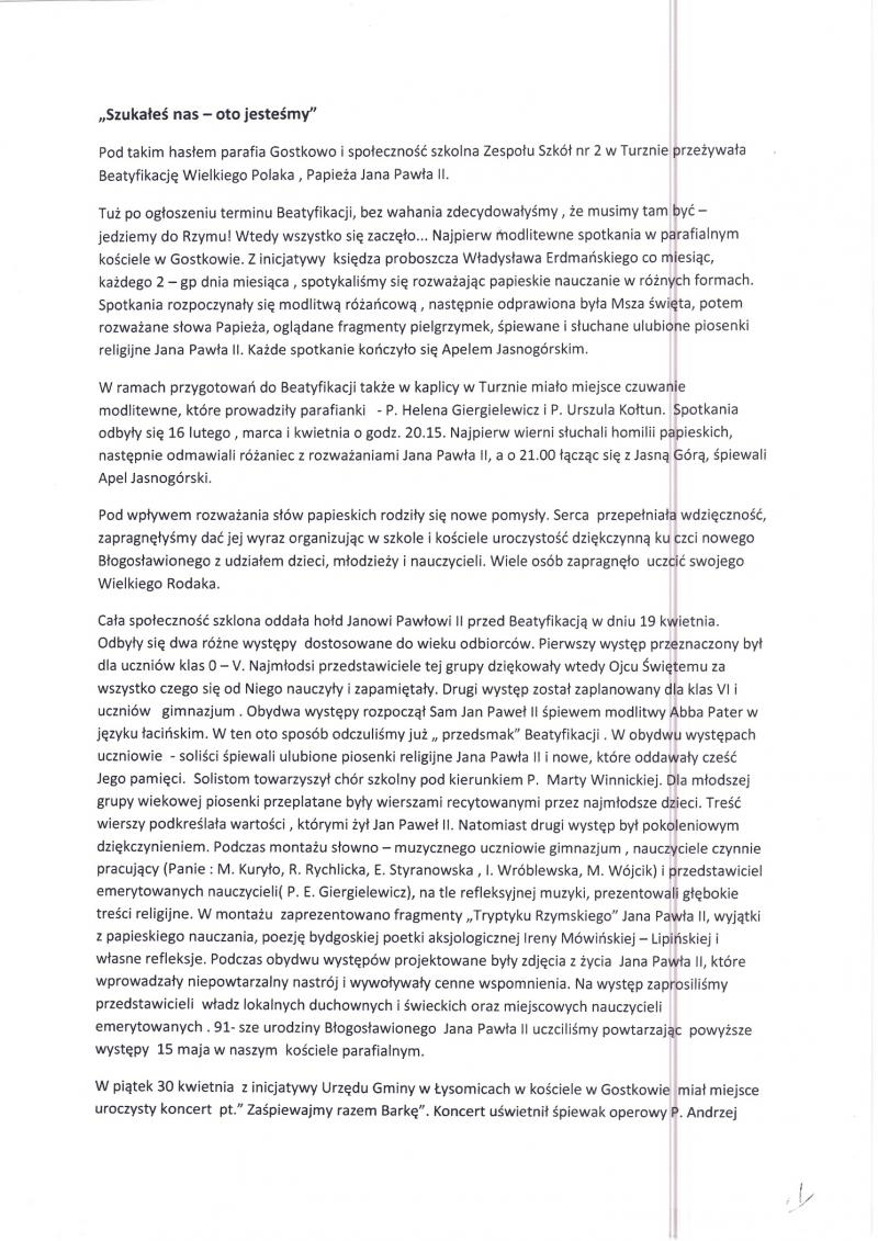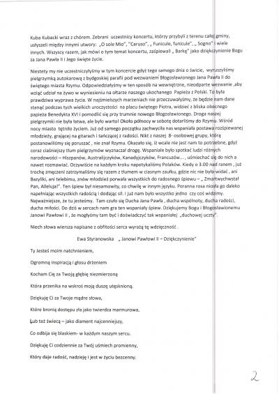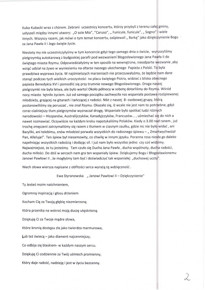 Wszystkim uczestnikom składamy serdeczne podziękowania. Dziękujemy Panu Wójtowi Piotrowi Kowalowi za zaorganizowanie grupy z Łysomic i zabezpieczenie transportu. Pozdrawiam serdecznie.