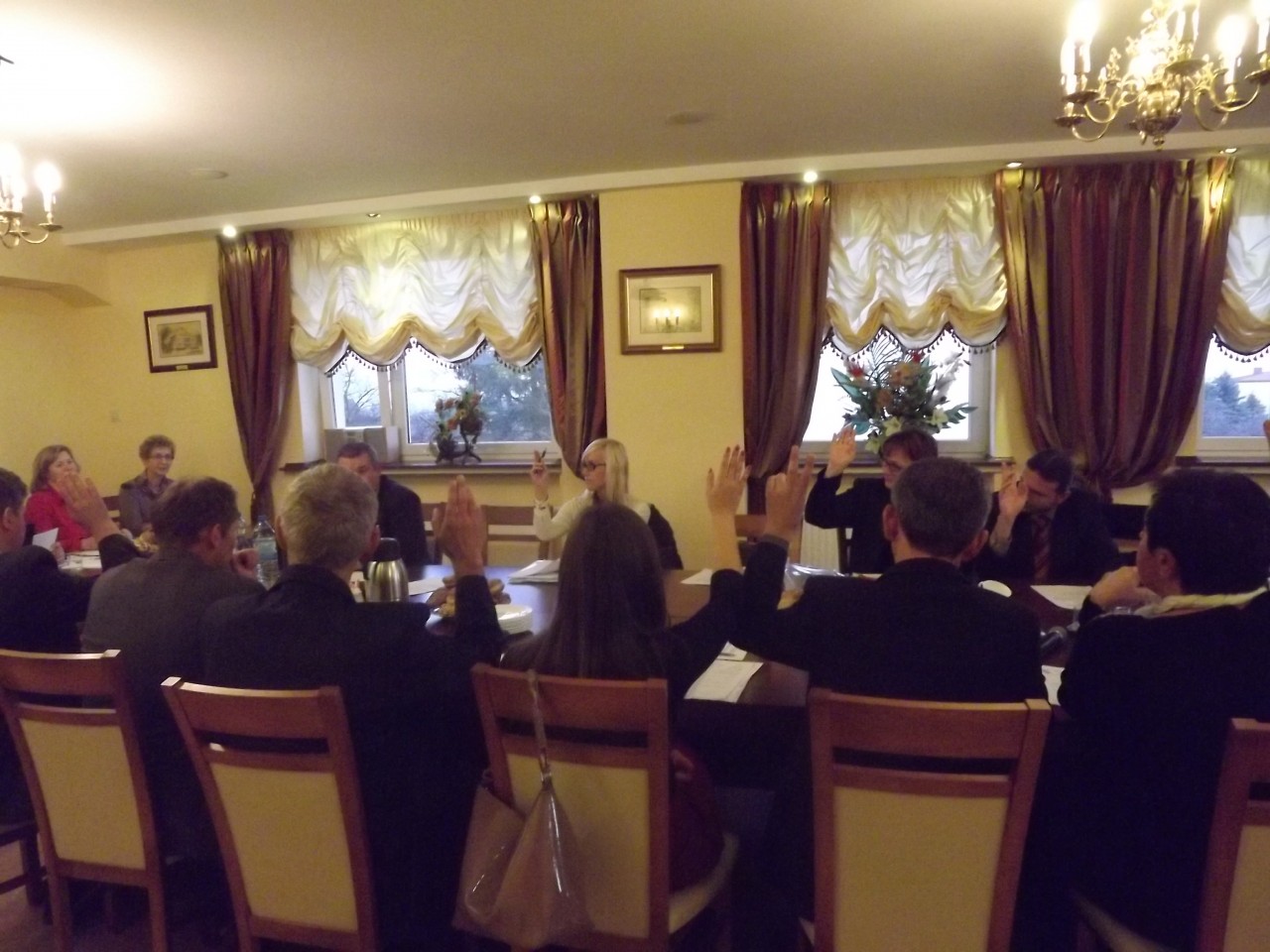 XXVI Sesja Rady Gminy Łysomice – 26 listopada 2012 r O godz. 1500 w sali nr 8 Urzędu Gminy w Łysomicach rozpoczęła się XXVI Sesja Rady Gminy Łysomice. W obradach sesji uczestniczyli Radni (wg listy obecności), Sołtysi, Przewodniczący Rad Sołeckich (wg listy obecności), Wójt Gminy- p. Piotr Kowal, Sekretarz Gminy p. Bożena Cieplińska, pracownik Urzędu Gminy – p. Teresa Miętek, Radca Prawny – p. Magdalena Chrzanowska-Thiede, Inspektor ds. oświaty i sportu - p. Magdalena Kwaśniewska, Komendant Komisariatu Policji w Chełmży – p. Mariusz Sobiecki, Dzielnicowy Komisariatu Policji w Chełmży – p. Oktawian Truszczyński, Kustosz Regionalnej Izby Historii i Tradycji – p. Adam Kozłowski oraz mieszkańcy gminy. Po przyjęciu porządku obrad Wiceprzewodniczący Rady Gminy Pan Robert Kożuchowski przedstawił nowego Komendanta Komisariatu Policji w Chełmży nadkomisarza Pana Mariusza Sobieckiego, który z dniem 12 listopada br. w wyniku wygranego konkursu został powołany na Komendanta Komisariatu Policji w Chełmży. Ponadto Wiceprzewodniczący Rady Gminy poinformował, że w minioną sobotę miała miejsce ważna uroczystość na terenie Gminy Łysomice nadanie Sztandaru dla Klubu Honorowych Dawców Krwi w Ostaszewie. Następnie Pani Magdalena Kwaśniewska – inspektor ds. oświaty przedstawiła informację o stanie realizacji zadań oświatowych w Gminie Łysomice za rok szkolny 2011/2012. Po dyskusji odnośnie przedstawionego sprawozdania Wójt Gminy wraz z Wiceprzewodniczącym Rady Gminy złożyli gratulacje, wręczając kwiaty Panu Adamowi Kozłowskiemu Kustoszowi Regionalnej Izby Historii i Tradycji w uznaniu sukcesu jaki odniósł w rankingu organizowanym przez Urząd Marszałkowski Województwa Kujawsko-Pomorskiego. O tytuł „ Odkrywcy 2012” ubiegało się 40 kandydatów z całego województwa. W kategorii „Promocja Turystyczna Regionu” w/w muzeum zajęło I miejsce. W dalszej części obrad radni przeszli do debaty nad projektami uchwał. W toku przeprowadzonych głosowań Radni podjęli następujące uchwały w sprawie: - przystąpienia Gminy Łysomice do realizacji projektu w ramach Programu Operacyjnego Kapitał Ludzki ze środków Europejskiego Funduszu Społecznego, Priorytet IX „Rozwój wykształcenia i kompetencji w regionach”. Działanie 9.1 „Wyrównywanie szans edukacyjnych i zapewnienie wysokiej jakości usług edukacyjnych świadczonych w systemie oświaty” Poddziałanie 9.1.1 „Zmniejszenie nierówności w stopniu upowszechniania edukacji przedszkolnej” , - wyrażenia zgody na nieodpłatne nabycie nieruchomości , - wyrażenia zgody na nieodpłatne nabycie nieruchomości , - wyrażenia zgody na nieodpłatne nabycie nieruchomości, - obniżenia średniej ceny skupu żyta z pierwszych trzech kwartałów 2012 roku celem obliczenia podatku rolnego na 2013 rok, - określenia wysokości stawek podatku od środków transportowych na 2013 rok, - podatku od nieruchomości na 2013 rok, - zatwierdzenia taryf dla zbiorowego zaopatrzenia w wodę i zbiorowego odprowadzania ścieków dla Gminnego Zakładu Komunalnego w Gostkowie, - obwodów głosowania, - przystąpienia do sporządzenia miejscowego planu zagospodarowania przestrzennego w miejscowości Łysomice, Gmina Łysomice. Po przyjęciu uchwał Radni przyjęli stanowisko w sprawie wyrażenia poparcia dla uchwały Rady Miejskiej Inowrocławia w sprawie skierowania do Trybunału Konstytucyjnego wniosku o stwierdzenie niezgodności z Konstytucją Rzeczypospolitej Polskiej przepisów ustawy o utrzymaniu czystości i porządku w gminach. Po za tym Radni i wszyscy biorący udział w obradach sesji z uwagą wysłuchali Wójta Gminy, który złożył sprawozdania z działalności Wójta między sesjami oraz z realizacji uchwał Rady Gminy.