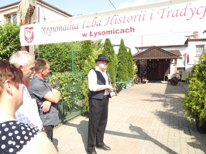 Następnie zwiedzający udali się do Regionalnej Izby Historii i Tradycji  Gminy Łysomice. Tam oprowadził zwiedzających kustosz muzeum p. Adam Kozłowski. Wszystkie narzędzia i zbierane przez lata eksponaty wywarły na zwiedzających szereg wspomnień z dzieciństwa, szczególnie drewniane ławki i kałamarze, którymi wielu z nich uczyło się pisać pierwszych liter.