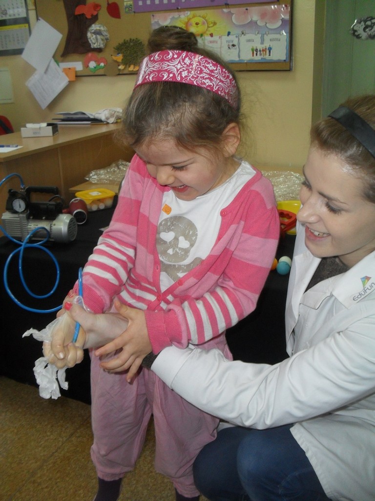Dzięki warsztatom dzieci zamieniały się w małych naukowców odkrywających tajniki świata: sprawdziły czym jest elektryczność, zamrażały kwiaty, unosiły przedmioty, podróżowały po świecie, poleciały w chmury, a nawet zgłębiły kosmos i jego tajemnice. Innym razem poznały zawody i ich atrybuty. Zamieniając się w lekarzy mogły posłuchać bicia serca, zmierzyć ciśnienie i sprawdzić co kryje w sobie człowiek. Samodzielnie wykonały mydełko i upiekły matematyczne ciasteczka.