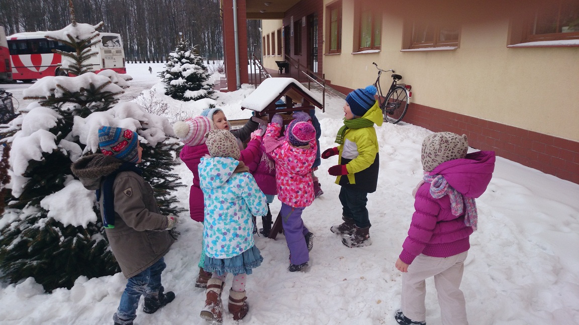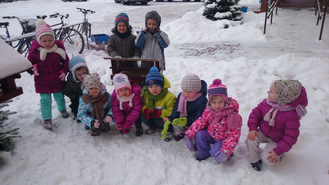 Zimowy czas…. "Śnieg zasypal pola, las Dzieci z naszego przedszkola przyniosły chleb, ziarna którymi karmią ptaki. Takie działanie sprawia wiele radości i satysfakcji, ale również niesie ze sobą walory edukacyjne takie jak odpowiedzialność, dbanie o środowisko, daje możliwość obserwacji. Podczas zajęć dydaktycznych m.in. poznajemy nazwy ptaków zimujących w naszym kraju, rozmawiamy na temat bezpieczeństwa podczas zabaw zimowych. Jak tylko to możliwe wychodzimy na świeże powietrze, żeby nacieszyć się zimową aurą. autor: Justyna Wojnowska-Wachowiak