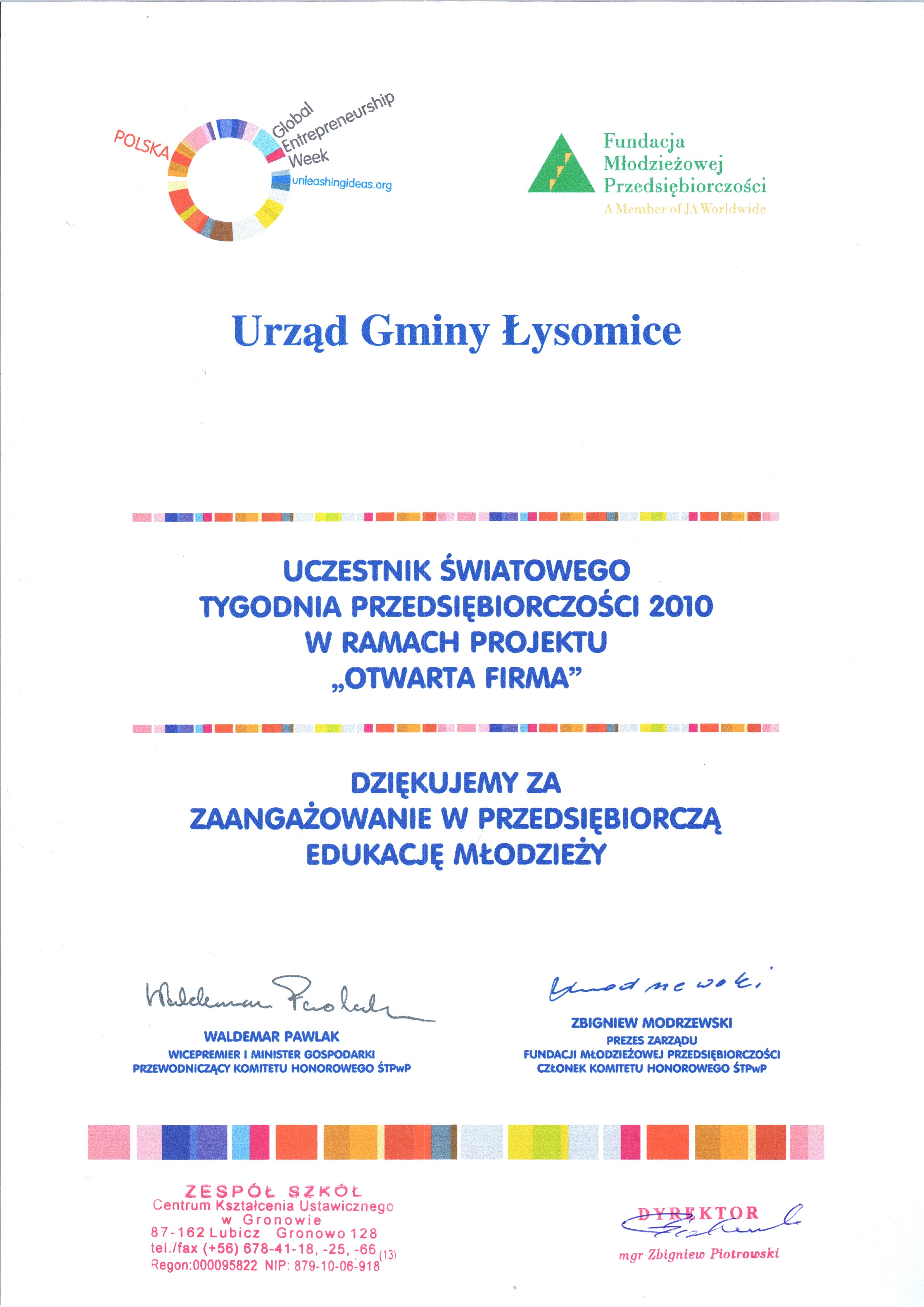 Dane kontaktoweUrząd Gminy Łysomiceul. Warszawska 8, 87-148 Łysomice tel. (56) 678-32-22, 678-33-95 tel./fax (56) 678-35-05 sekretariat@lysomice.pl Licznik odwiedzin: 103376