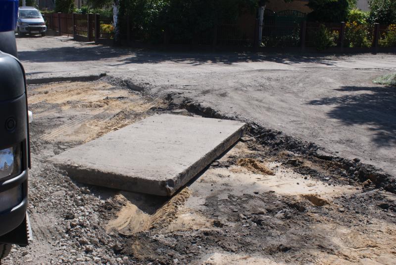 Etapy prac: 1. Zdjęcie i wywóz istniejących płyt drogowych